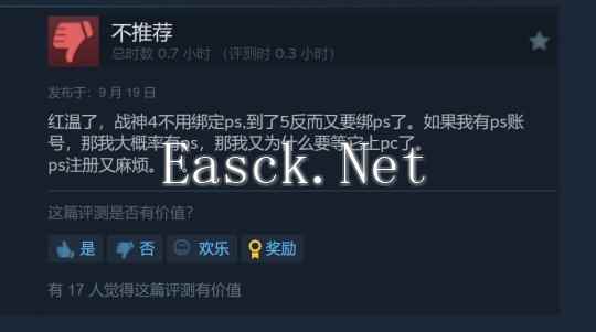 《战神5:诸神黄昏》好评率太低一个主要原因在于国内大量玩家吐槽一个单机游戏要绑定PSN账户,而《战神4》是不需要的。