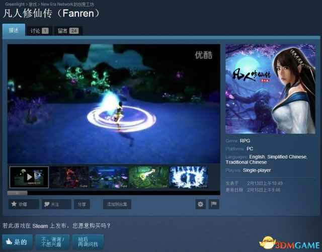 凡人修仙传登录Steam青睐之光 修仙传奇再启征程