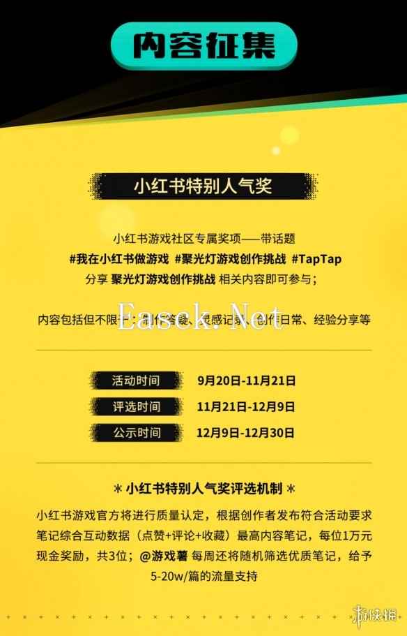 当然此次聚光灯GameJam携手小红书的目的,不止仅限于将优秀的游戏产品推向商业化成功,更是一场穿梭于游戏理想与现实生活之间的探索——当创作过程充分曝光在核心玩家以外的大众视野下,是否可以与生活中的情感、思想和体验产生新的碰撞,诞生出更多有意思、有温度的游戏作品。 相信在这次「聚光灯游戏创作挑战」中,开发者们不仅能收获奖金、掌声和流量,也能找到志同道合的他们,碰撞出不一样的灵感火花,通过合作的力量共同制作出一款好玩的游戏。 |