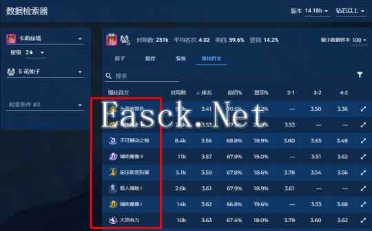 深度条件构筑也会让强化更加的精准,但是尤其是在强化这个方面,数据是帮你去理解一个阵容的本质而不是反过来遵从数据,这就是为什么大数据并不会让我们这些作者失业。 首先大数据量级非常大,非常耗费时间,我们有给大家深度整理梳理阵容大数据的价值,为大家提供更好更深度的东西。 另外数据需要加入理解才能更好,单纯的看数据很容易坑人,比如为死者复仇好,为什么好,那些强化为什么在前面?理解了这些你不看大数据去拿构筑也不会拿的很差。 因为滑板鞋是个前后排肉坦拖羊刀的阵容,首先洛不能死,所以给洛加坦度的东西都是好东西,滑板鞋是个单C,副C不是泽拉斯就是卡蜜尔,都得9人口,为死者复仇也是,这个阵容其他人都是挂件,而且伤害是延迟拖出来的,所以先送死一些挂件再强很符合这个阵容的逻辑,这个阵容是一个高上限阵容,不在意前期的节奏,所以冲榜战士,假人辅助都很适合连败走这个阵容保证装备。
