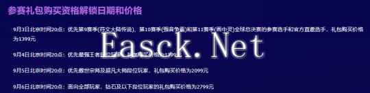 不同段位的玩家购买参加礼包的价格也不同,王者段位的玩家享有最佳优惠,也就是1399元,不用特别担心这个钱打水漂,因为公开赛是这样的,相当于所有人买票,然后前一半的人分所有的门票钱。 也就是说,只要你不是一轮游,你的门票钱就会赚回来,能过两轮,就是纯赚。