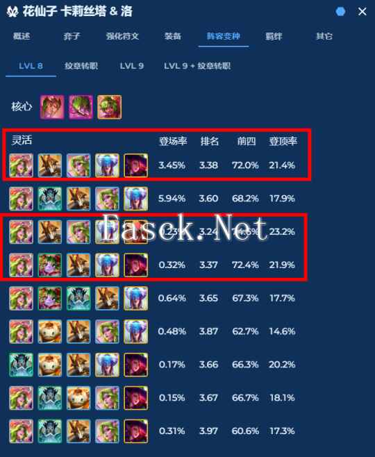 所以王者玩家会在里面去拆解构筑,怎么让这个阵容变形T0,而不是他本身就是T0,最有价值的优先是强化,有一些强化拿了基本上就代表分,所以一定要看每一个阵容的超模强化是什么,而不是看所有。 就是现在的云顶学习深度已经到了我不是看强化榜单就行了,而是我要去拆解每一个阵容的强化排名和装备组合,海量的记忆才能到王者水平。