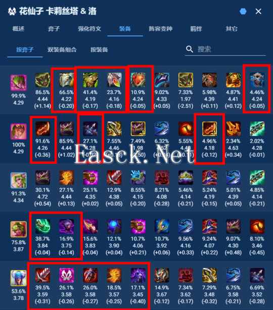 比如我们可以通过深度计算,知道如何让一个组合变成3.0,比如卡莉丝塔的构筑就是泽拉斯提升度最高。