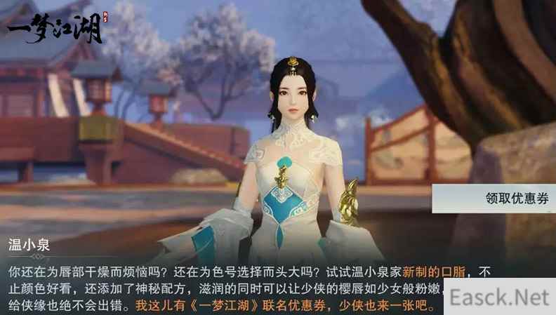 【人气NPC试色 专属优惠券在线领取】 《一梦江湖》X温碧泉双11限定款礼盒正式推出,前往温碧泉天猫旗舰店即可购买。梁妈妈、方思明、蔡居诚倾情出演,亲自试色!活动时间内云梦汤池还有联名专属NPC“温小泉”在线发放双11优惠券,惊喜福利千万不要错过。