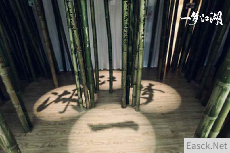 【光影造梦境 打卡好去处】 漫步竹林中,你会惊喜地看到《一梦江湖》的logo,在特殊的灯光投射下,地面形成一梦江湖四个字,亲切生动,在光与影之间,与江湖不期而遇。