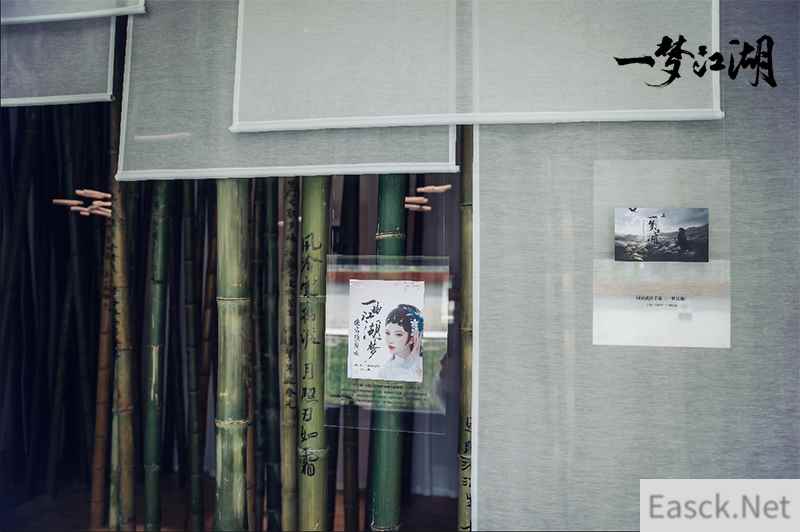 《一梦江湖》主题国风展区以象征君子的竹林为场景。布景采用从安吉特意挑选运送的精品翠竹装饰,光影明灭,仿佛烟雨氤氲的江南。步入其中,书香古韵慢慢袭来,驻足细看,竹身上还写有飘逸的毛笔字,颇有一番书香韵。