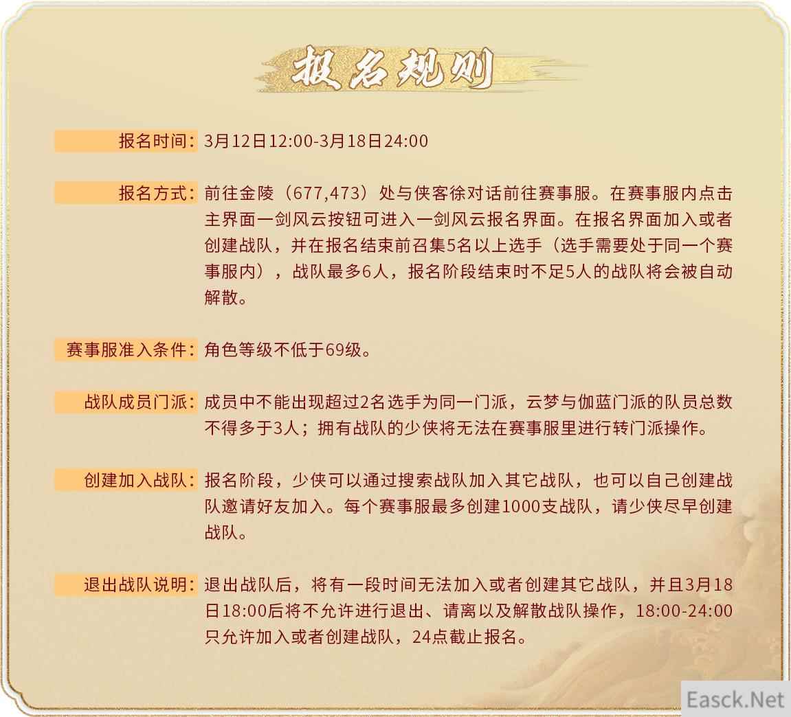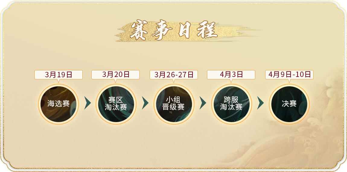 在战队确认报名成功后,3月19日,选手们在赛事服内前往一剑风云海选界面参与比赛,各赛区排名前16的队伍将成功晋级,经过海选赛、赛区淘汰赛、小组赛、16进8跨服淘汰赛的重重挑战,最终突围而出的队伍将在4月9日至10日的总决赛中,向武道之巅发起最后的冲锋!