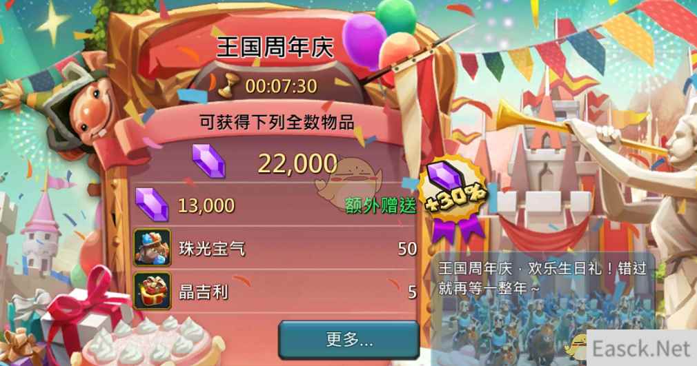 特惠礼包限时购,一年一次好优惠! 一整年只有一次、王国最具性价比的钜惠礼包,周年庆典期间限时抢购,错过不再有!