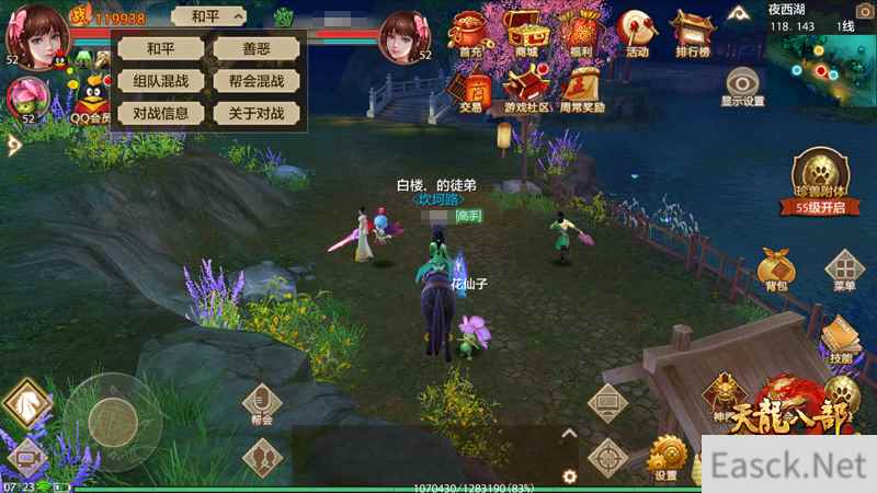 野外竞技对抗 一言不合拔刀相向 在《天龙八部手游》中,玩家在不断历练成长时会接触到各种各样的人。在交际中难免会遇到理念不同之辈,这种情况下或许就是一言不合拔刀相向。在野外,即除了苏州,洛阳,玄武岛,活动副本以外可以进行PK操作的地图,玩家可以切换不同的战斗模式,包括善恶、组队混战、帮会混战等,1V1打不过,就组队一起上,组队还不能赢,随时可能升级为帮会群战。
