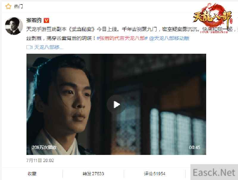 《天龙八部手游》星掌门“霸屏”!见证张若昀破解武当秘案