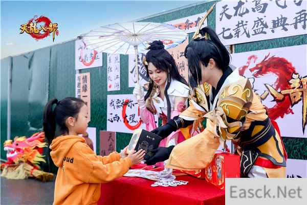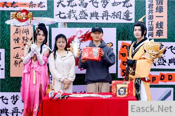 天龙主题打卡墙 现场留念相赠礼品 这是一场值得纪念的旅行与体验,我们还在举行放飞仪式的附近为大家建造了天龙主题打卡墙。现场热闹非凡,还有超无敌还原的颜值coser与大家合影留恋。用镜头记录每一个欢喜瞬间,成为少侠们此生弥足珍贵的记忆!不知这些coser是不是你们心中天龙角色的样子呢?与此同时,到达现场的少侠还有精美礼品获得。