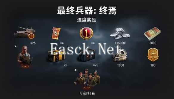 【专属进度奖励】 完成活动中的特殊任务并获得令牌即可逐步推进阶段进度。进度系统包含20个阶段,每个进度阶段需要用10个令牌来完成。您可以在进度界面中查看完成阶段和获得奖励所需的令牌数量。 完成每个新阶段即可获得珍贵的游戏内物品,包括: ·两名具有专属语音的独特乘员(完成进度阶段10和19后获得),一名自选乘员和冯·克里格本人。 ·战斗通行证点数 ·工程师补给品和猎犬补给品 ·战争债券 ·用于驾驶E-110 BT进入战斗的钥匙 ·银币 ·合金元件 ·《坦克世界》高级账号天数