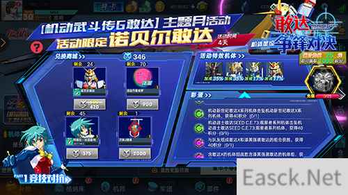 在9月「机动武斗传G高达主题月活动part.1」中,通过各种对战、使用新机X与漆黑强袭完成限定条件的对决,就能获得新机体、新机师、活动升星哈罗以及专属徽章等众多的华丽奖励,而其中最大诱惑无疑就是「诺贝尔高达」与「阿莲比」了。这一台明显致敬美少女战士,有着独特女性造型的特化机体可谓人气鼎沸,专属机师也因为元气少女的造型,从粉丝那里获得了不属于女主人公的倾慕。