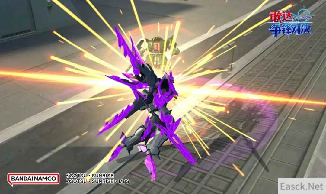 【必杀技】 按下必杀键。 切换为GN长矛形态的同时,连续挥动GN长矛,朝目标发射5道光波,每有一道光波命中时,叠加1层冰冷效果,命中时击飞目标。