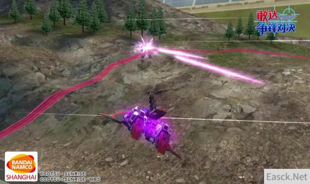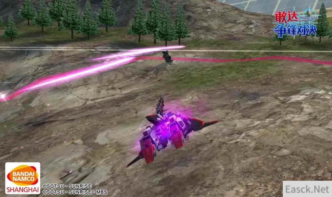 【普通射击】 按下射击键。使用MA背部光束步枪对目标进行光束射击,命中造成击退效果。