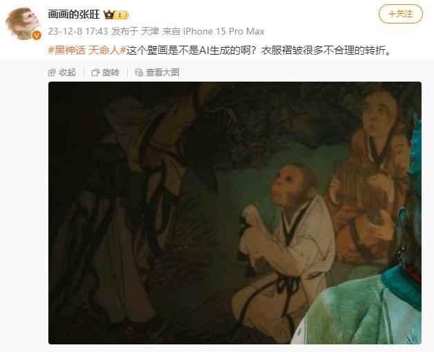 网友怀疑《黑神话:悟空》壁画是AI作图 杨奇放出原图