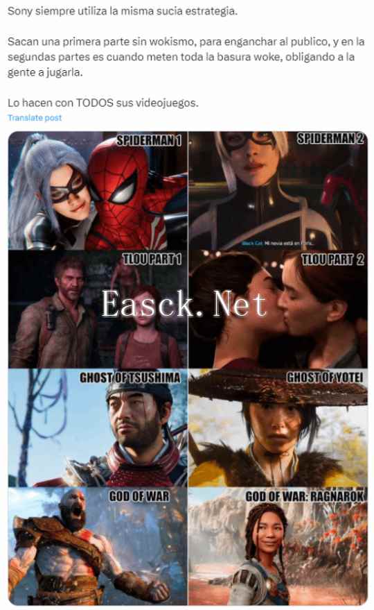 “索尼总是使用同样的肮脏策略。他们发布的系列首部作品通常没有觉醒主义,以吸引公众来玩。而在续作中,他们把所有觉醒主义的垃圾加进去,让喜欢前作的玩家不得不我拿。他们对所有的游戏都这么做。”