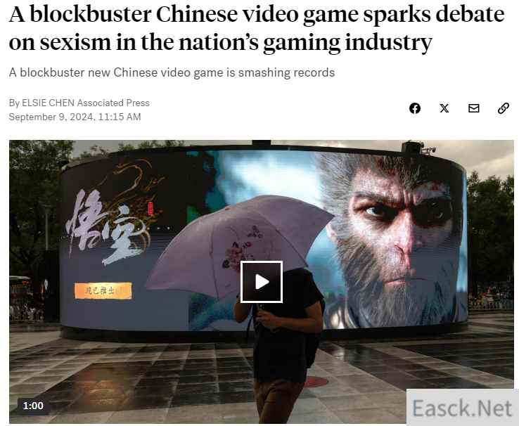 《黑神话:悟空》发售后大获成功,许多人也沉浸其中。然而一些外媒依然唧唧歪歪,不断抹黑游戏科学。这不,最近美联社记者ELSIE CHEN发文章称,《黑神话》歧视女性,其引发了“人们对中国以男性为主的游戏文化中长期存在的严重性别歧视的关注。”