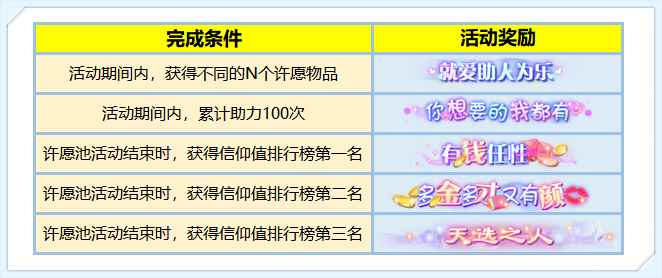 四、许愿池称号活动 听说以后只要虔诚地向春神许愿,就能轻易中大奖哦!全新系统—许愿池震撼来袭,轻松许愿得大奖,还有专属称号等你拿哦!