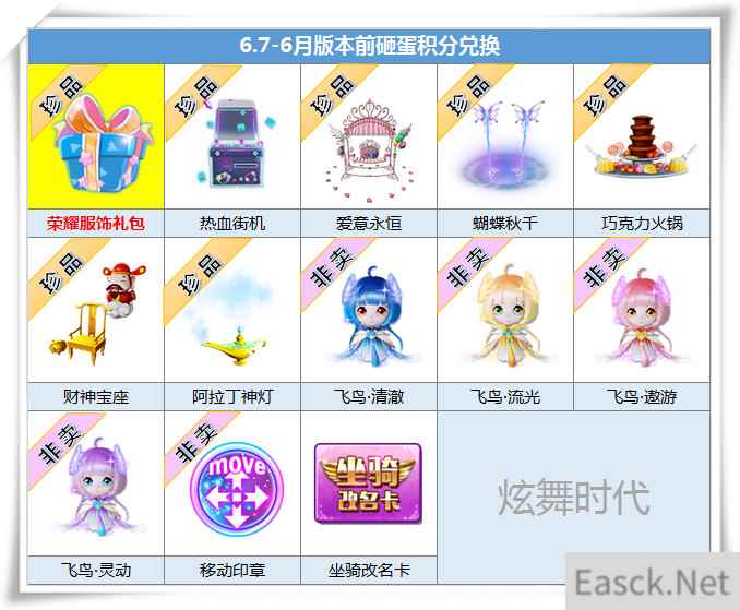 七、砸蛋新升级 6月版本更新后(皇宫大区6月12日,其他大区6月14日),激萌砸蛋即将改版! 单次扭蛋金额调整为50金币,同时奖池内的高端物品将不仅限于非卖座椅,还会增加服饰及饰品。 为迎接砸蛋更新,在版本更新后(皇宫大区6月12日,其他大区6月14日),小伙伴们登录即可领取1张砸蛋券,免费砸一发!