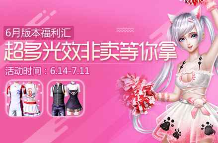 六月福利汇 活动时间:6月14日-7月11日 活动地址:PC端或手机端 一、6月版本更新送 6.14-7.11,6月版本更新,登录游戏即可领取宝儿套装,更有动态背饰非卖-萌翼熊猫等你拿哟!