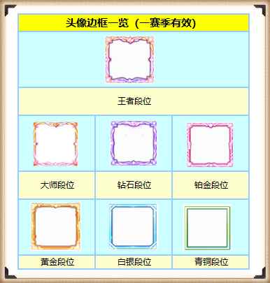五、S6赛季专属段位头像框 每个段位都有相对应的专属头像框和丰厚点券噢!只要达到对应段位即可抱走该头像框和获得丰厚点券!刺不刺激?惊不惊喜?