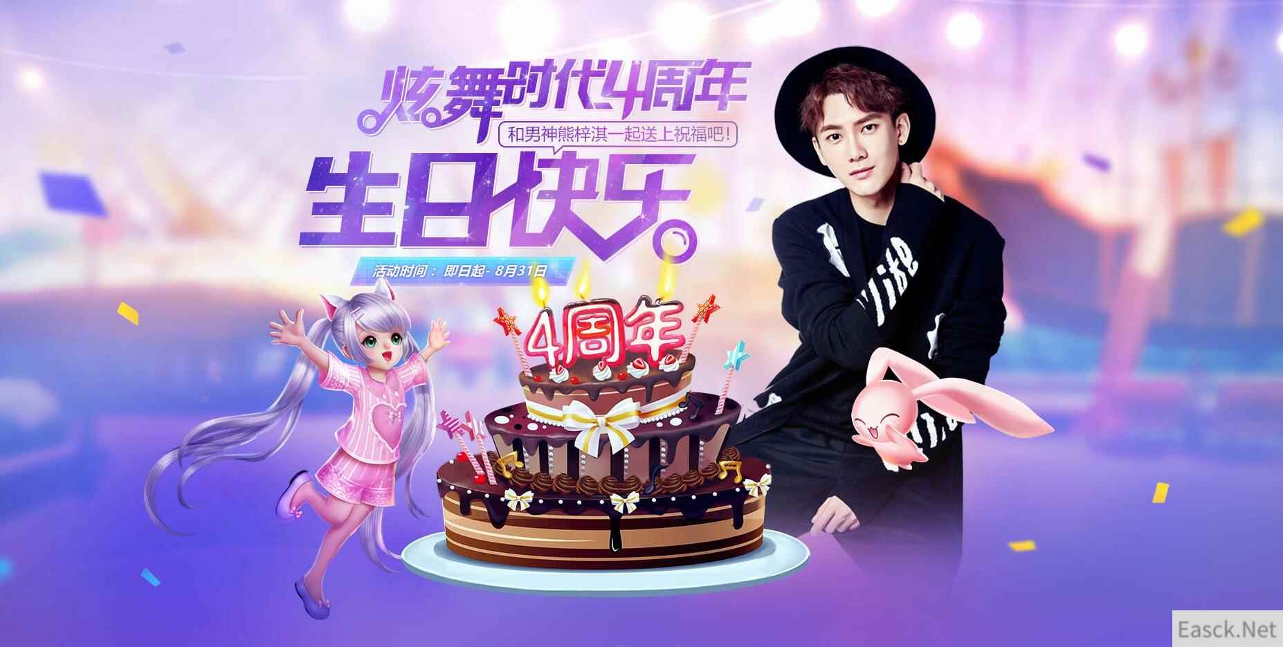 《炫舞时代》四周年,福利满满!和男神熊梓淇一起送上祝福,满3祝福即可获得永久上衣以及抽取炫舞时代4周年豆丁公仔的机会。成为超级会员,前往活动页面送祝福,还可获得额外的活动奖励。