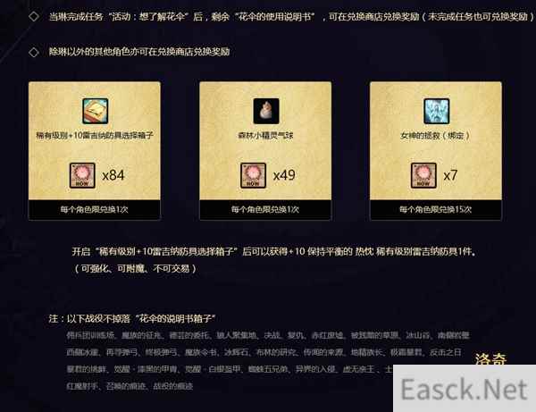 而在琳完成任务“活动:想了解花伞”后,剩余“花伞的使用说明书”,可在兑换商店兑换奖励(未完成任务也可兑换奖励)。除琳以外的其余角色也可进行奖励兑换。