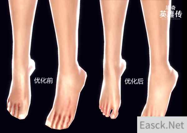 而脚部模型则为此次优化的“关键”,由于此前脚部建模过于粗糙,因此仅对建模进行调整是无法实现质的飞跃,为了达到最好的效果,因此开发团队对脚部模型整体进行了修改。