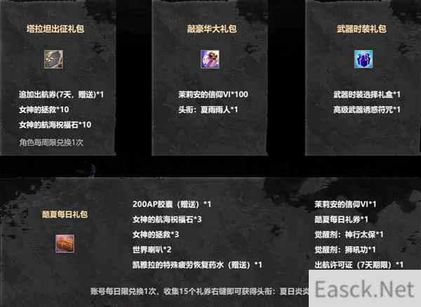 【商城礼包】 在7月6日维护后至8月10日维护前,商城之中将上架多款超值礼包!由于“武器时装礼包”为首次上架的道具,大家可以稍微了解一下哦!