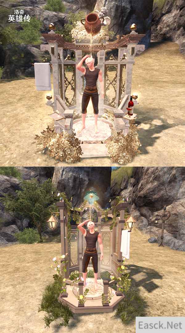 既然前往海滩,在游泳之后,咱们的角色肯定想要第一时间将身上的海水洗净,那么“豪华浴间”与“自然浴间”就是不可或缺的啦!随时随地感受与自然共浴的浪漫!