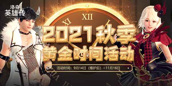 在9月14日维护后至11月16日,2021秋季黄金时间活动开启,英雄们完成指定目标可获得“2021秋季黄金时间礼券”,礼券可在兑换商店兑换奖励,每次兑换还将额外获得“2021秋季黄金时间额外金币”,金币可兑换到最大+20饰品强化兑换礼券礼盒、永久内衣/发型兑换券、S级克隆时装制作礼盒、2021秋季黄金时间时装套装礼盒等豪华大礼!