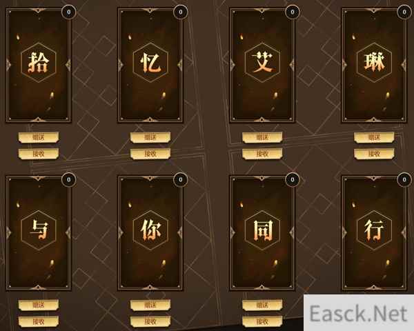 英雄们需要收集8张字卡,分别是“拾忆艾琳,与你同行”,翻牌若是获得了重复的字卡,可以点击“赠送”按钮复制卡片码,将多余的字卡赠送给好友,好友只需点击“接受”按钮,输入卡片码,即可获取未获得的字卡啦!(赠送/接受于12月25日23:59截止)