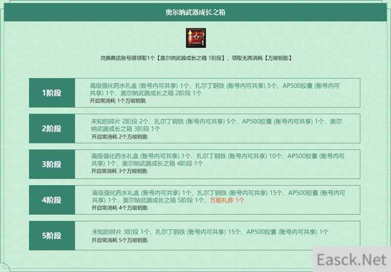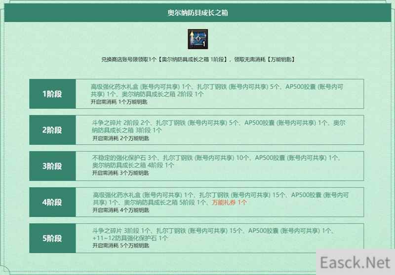 快乐的假期结束,大家过的怎么样呢?今日,《洛奇英雄传》又将上线全新“成长的万能钥匙”活动,在激战的同时还能获得可以提升与成长的道具哟!那究竟怎么参与呢?现在,我们一起了解一下吧! 在5月7日维护后至5月21日维护前,英雄们完成特殊副本、105级~115级主线Raid战役和骑士团战役,即可从战役掉落中获得万能钥匙(每周最多可获得25个),使用万能钥匙可开启附魔/奥尔纳防具/奥尔纳武器成长之箱,当然,也可以用来兑换最高级生命药水哟! 成长之箱分为三种,其中分别可获得附魔、奥尔纳防具、奥尔纳武器相关的成长道具,账号每种成长之箱限领取1个,领取时无需消耗万能钥匙。开启每一阶段的成长之箱需要的万能钥匙随阶段的提升而增加,其中可获得的道具种类及数量也会越来越多。