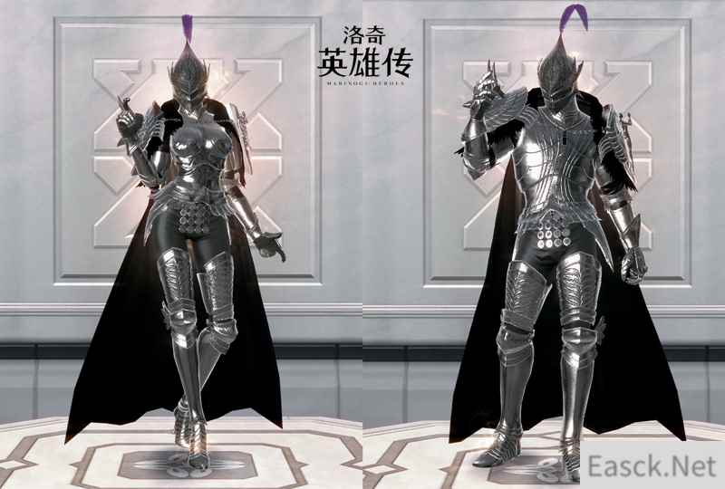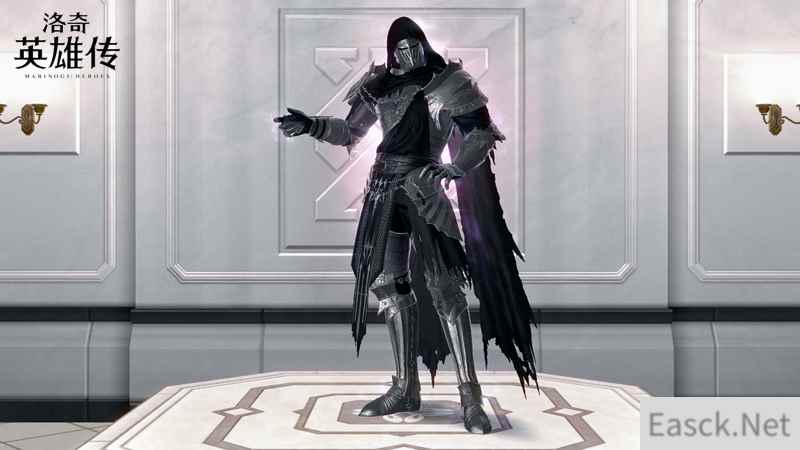 而男性新款S级时装则为“黑夜幻想曲套装”,如它的名字一般,需要一些想象,钢铁面罩与兜帽将头部包裹,使人看不清面庞,全身金属与黑色布料为主,半盔甲的搭配轻盈又安全感满分,更有少见的紫色光芒围绕。