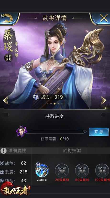 征服系统 战败同盟成立 共同反抗征服大军 不同于以往各自为战,或只能请求联盟支援。《乱世王者》手游的征服系统,为所有被征服的玩家提供一个“临时同盟”的契机——被同一胜利者征服的玩家,将会自动加入一个聊天小组,玩家们可以在此谋划如何进行“反抗”。被征服期间,同一个聊天小组的玩家共享一个“反抗目标”以及“完成度”,小组任何成员打掉对应的战力,即可宣布全部人员完成反抗得以解脱。 全新武将登场 高级技能威力尽显 《乱世王者》手游全新版本推出周瑜、蔡琰、袁绍三名全新武将,分别代表战争型、发展型、辅助型类别。不同于其他武将,有两名新武将固定技能均为“高级”技能。发展型的武将蔡琰拥有“高级采集”技能,能使玩家野外采集速度全面提升;辅助型的武将袁绍拥有“高级训练”技能,能使玩家训练士兵的时间得以缩短。至于战争型的武将周瑜拥有“万箭齐发”技能,特别适用于全新征服系统引发的征服与反抗之战。