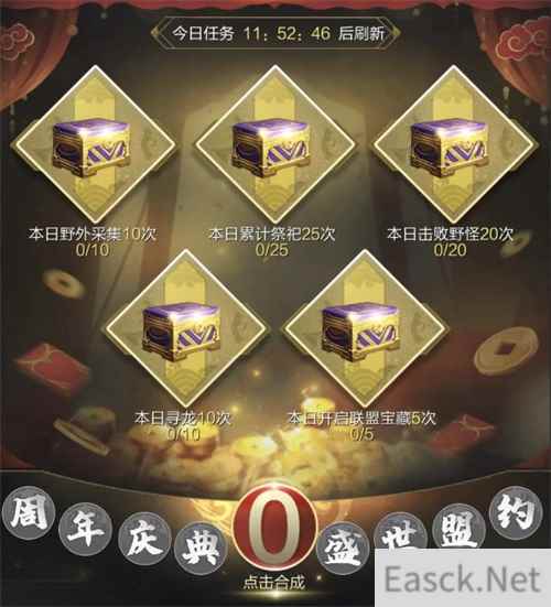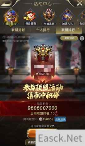 四、集字瓜分2亿奖池:人人有份永不落空 在活动期间,玩家们可通过完成不同的任务获得【周年庆典 盛世盟约】8个字中的任意1个;集齐8个字“周年庆典 盛世盟约”将获得1次周年庆的2亿金币奖池的拼手气瓜分机会,活动期间最多获得3次机会。在集字阶段,各位主公可通过联盟频道向盟友索取自己所缺少的字,每日最多索取5次。