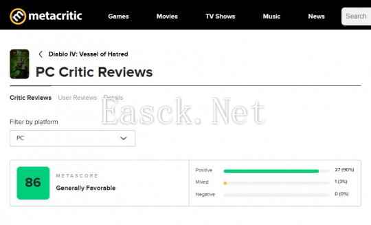 《暗黑破坏神4:憎恨之躯》IGN 8分 MC评分86分