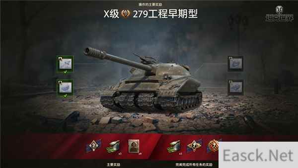 最后是S系的10级坦克“279工程早期型”(Object 279 (e)),在生存能力方面,其拥有高达2400点的生命值,170/130/90 mm毫米的车身装甲、以及330/140/90毫米的炮塔装甲,在机动性方面,其车身转向速度为每秒31.29度,炮塔转向速度为每秒29.2度。而在火力方面,其平均伤害达到440/440/530点,平均穿透力为258/340/68毫米,射速每分钟可达5.96发,并有着-5/+15的炮俯角/仰角。