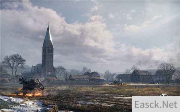 此外,利用屏幕空间反射技术,使物体、爆炸、射击、烟雾、阴影产生反射效果,让感官再次提升。 【新战场:斯杜季昂奇】 现在更具多样性的新战场已经降临,我们的视角也将被带入战争旋涡的中心,去挖掘战略的全新可能性。新地图“斯杜季昂奇”坐落于平原地区,地图以拥有大片土地、大量植被和一座以高大的天主教堂为中心的小村庄为特色,而一个小砖厂坐落在这张地图的正中间。