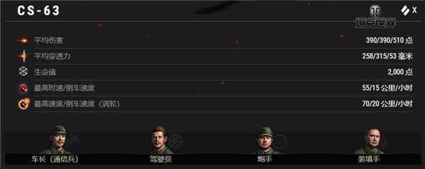 10级的CS-63作为新中坦分支下最强王牌,其主要属性特点与其他B系中型坦克类似。虽然他没有坚固的装甲,但具有高达390 点的优秀单发基础伤害和–8 度的火炮俯角,即便在移动中,指挥官仍然可以依靠它的火炮准度和火力,给予团队强有力的支援。
