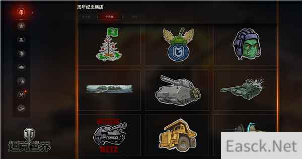 完成周年任务可以获得周年纪念币奖励。您可以使用这一特殊的活动代币在周年庆商店中购买各类独特货品。大部分货品是《坦克世界》10周年纪念收藏的一部分,包括贴花、徽章、签名以及大量2D风格,这些新风格描述了游戏漫长而有趣的历史。如果您是坦克个性化的忠实爱好者,那可以购买它们装饰你的坦克,让其看起来更加的与众不同!此外,周年庆商店中还会出售一系列战前指令,这些个人储备能提升坦克在一场战斗中的性能。