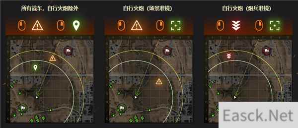 比如,自行火炮可以在火炮模式下左键点击小地图,提醒队友将要攻击的点或区域。而在场景模式下进行此操作则会提醒队友注意该区域。