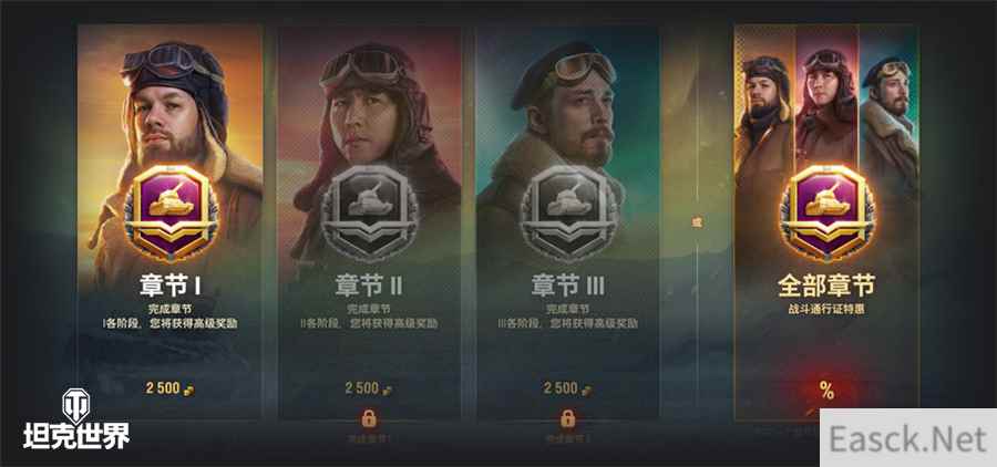 每个章节均可获得丰厚的基础和高级奖励,除渐变风格外,还能获得赏金配件、特殊乘员、系别蓝图碎片、贴花、令牌以及海量实用道具,其中新增加的令牌共可获得18枚,车长们可在军械库兑换五台稀有的9级坦克——分别是昆泽试验车、K-91-PT、777工程II型、4号先进战车和AE一期。此外还有更多高价值物品等着你,赚到即是爽到!