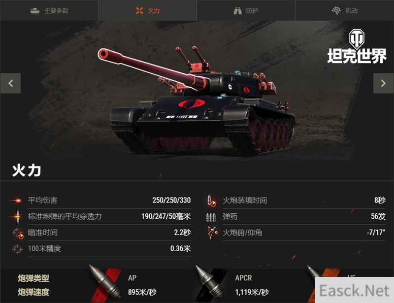 心怀叛逆之心,并拥有多重身份的眼镜蛇指挥官,所驾驶的B.O.A.坦克可发射AP、ARCR和HE三种弹药,平均伤害可达250/250/330,并拥有44千米/时的优秀机动性,负7度的火炮俯角让你在多种地形均能有稳定输出。