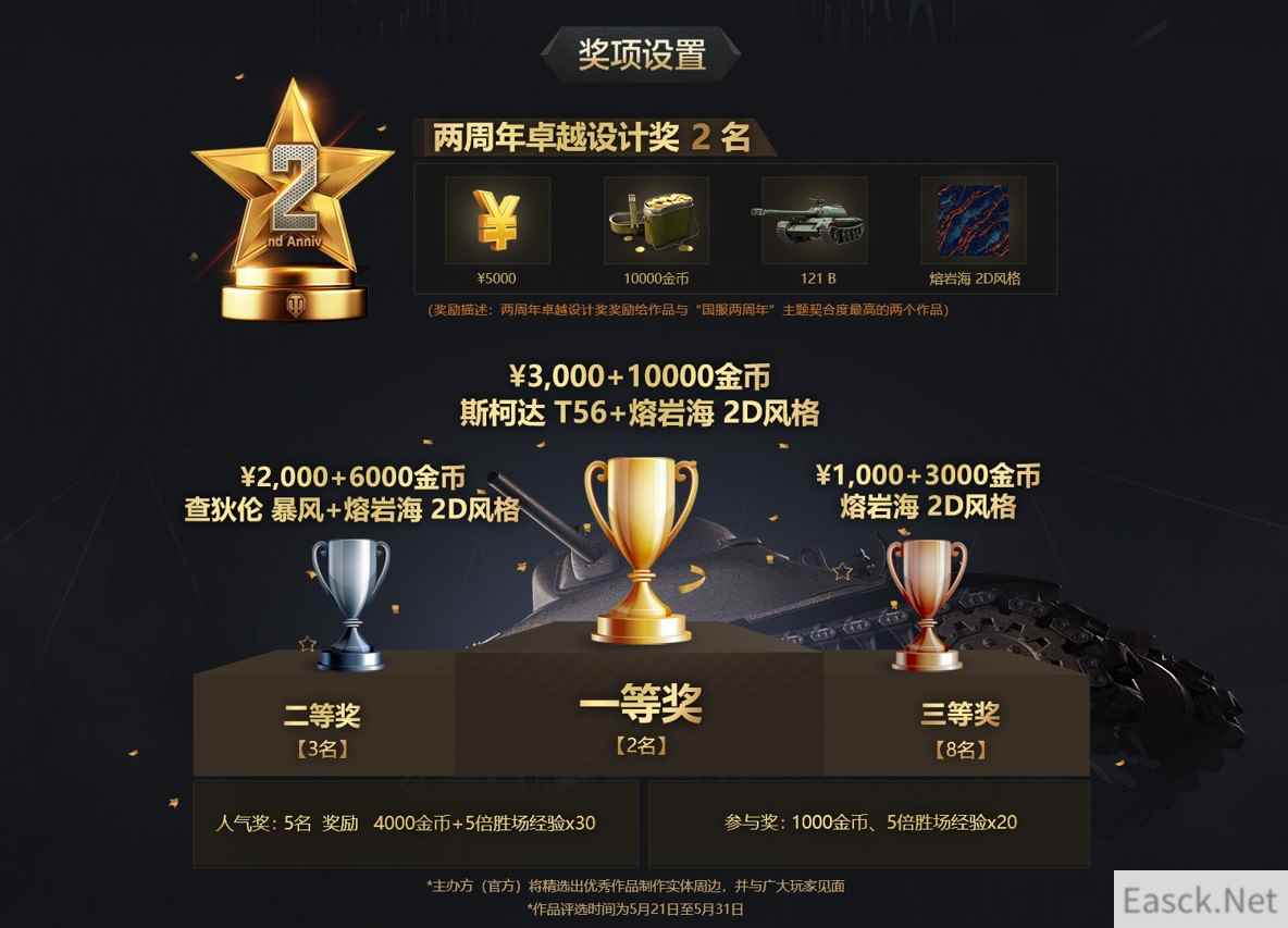 而在征集阶段结束后,活动还将于5月21日至5月31日开启作品评审环节,由玩家投票选出人气奖;而官方将根据作品创意、绘制水平、总体完成度等多方面因素评选出一、二、三等奖及与“国服两周年”主题最契合的两周年卓越设计奖!另外,只要成功通过审核的作者都将获得参与奖!