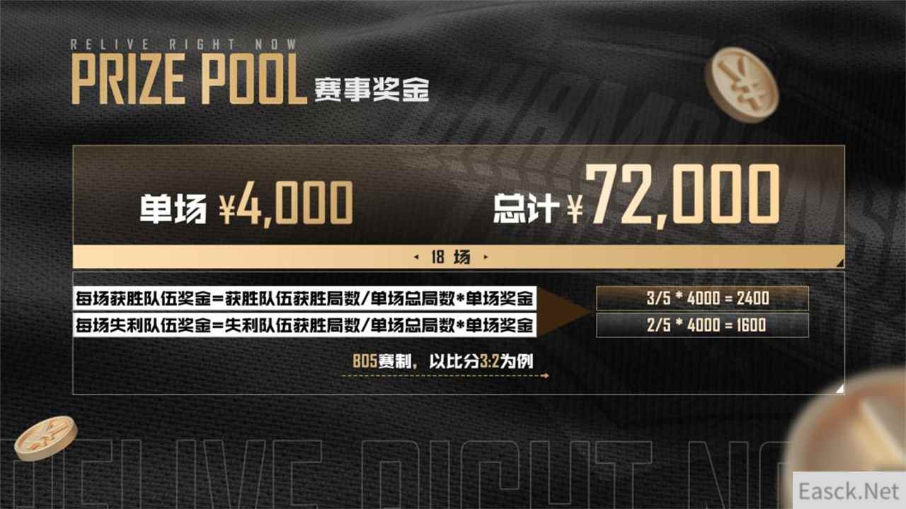 比赛时间 10月21日18点,BRIKD vs FALCONS 10月21日19点,MORI vs FALCONS 10月21日20点,REJECTS vs FALCONS 10月22日18点,BRIKD vs GCAT 10月22日19点,MORI vs GCAT 10月22日20点,REJECTS vs GCAT 10月28日-29日9点,中国战队VS 北美战队 10月28日-29日18点,中国战队VS 欧洲战队 比赛规则 本次赛事总奖金72000元,单场奖金4000元。来自中国的FALCONS(EGM)与GCAT将分别迎来亚太、北美、欧洲的共9支战队的挑战。在每个BO5中,每个小局胜利都会有相应奖金被队伍收入囊中!
