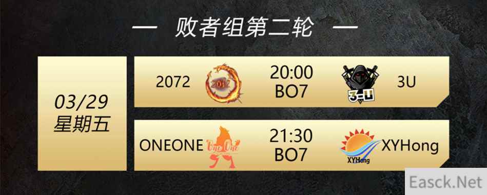 【3月29日】 周五晚八点败者组生死战率先打响, ONEONE对阵XYHong,2072迎战3U,小组赛的同组对手再次上演二番战!