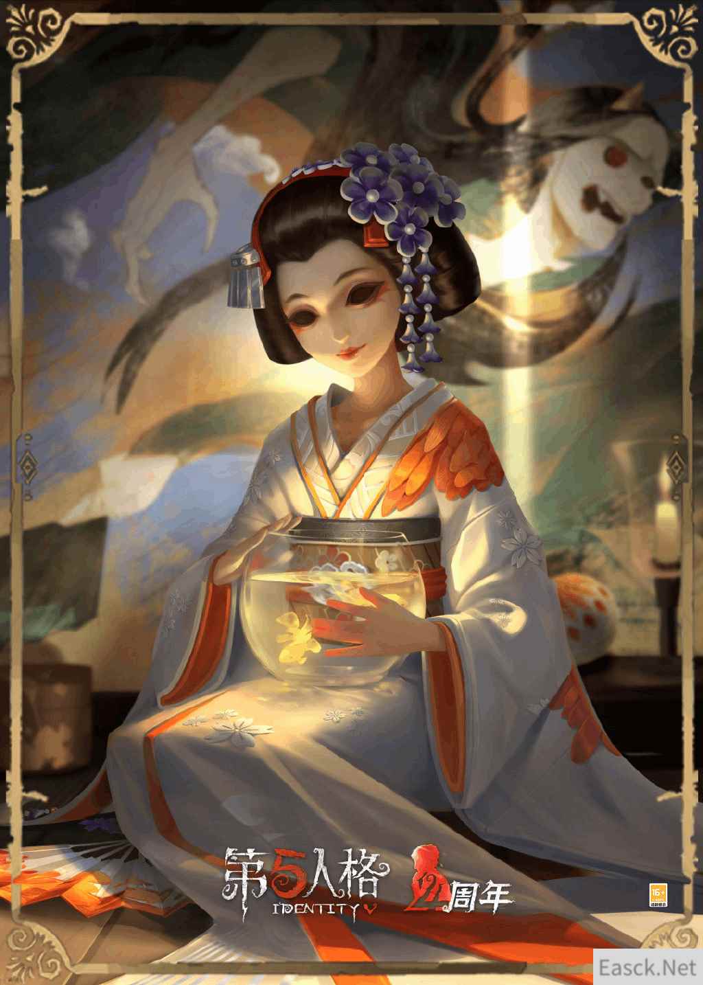 瓮中之身,曾慕沧海。网易首款1V4非对称竞技手游《第五人格》四周年庆狂欢第二阶段今日开启,周年剧情与系列活动火热上新,登录赠礼和限时充值返利也将如约而至,切勿错过!溯洄系列时装也携新作来贺,红蝶奇珍时装-更纱惊喜爆料,她的另一种人生,邀你来见证! 瓶中金鱼,画中般若 溯流而上,回到原点。如果时间逆转,那件令红蝶来到庄园的事情并未发生,一切又会怎样? 在时装海报中,红蝶-更纱神情恬静地侧坐在地上,温暖的光线洒在身上,手中的鱼缸里,两只金鱼正悠然畅游,给人以安然美好的感觉。但她身后的浮世绘上,凶戾的般若正在浪尖飞舞,仿佛惊涛骇浪即将袭来,粉碎这平静祥和的场景。