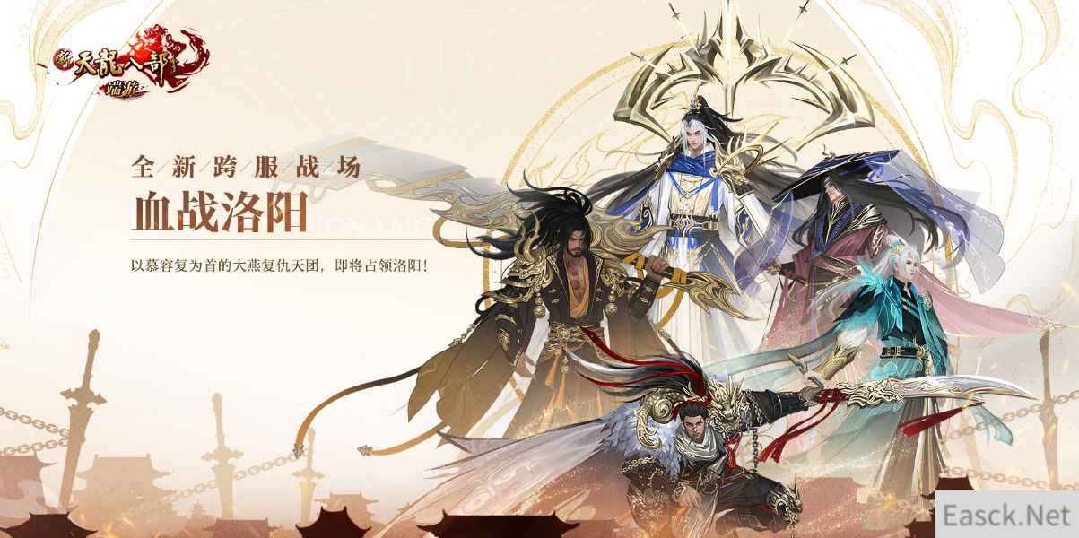 面对西夏贼军的再次进攻,各门派纷纷发起武学试炼。在PVE玩法【崇武试炼】中成为本门武学翘楚,与乔峰、段誉、虚竹三位大侠一同前往敌阵破局!而慕容复也以战火席卷了洛阳城,十四门派与他也将在洛阳开启最终决战,跨服PVP玩法【血战洛阳】将为这场战役画上终止符。慕容复如此密谋,最终能否实现光复大燕的夙愿,新天龙诚邀诸位少侠静候4月19日的最终决战!